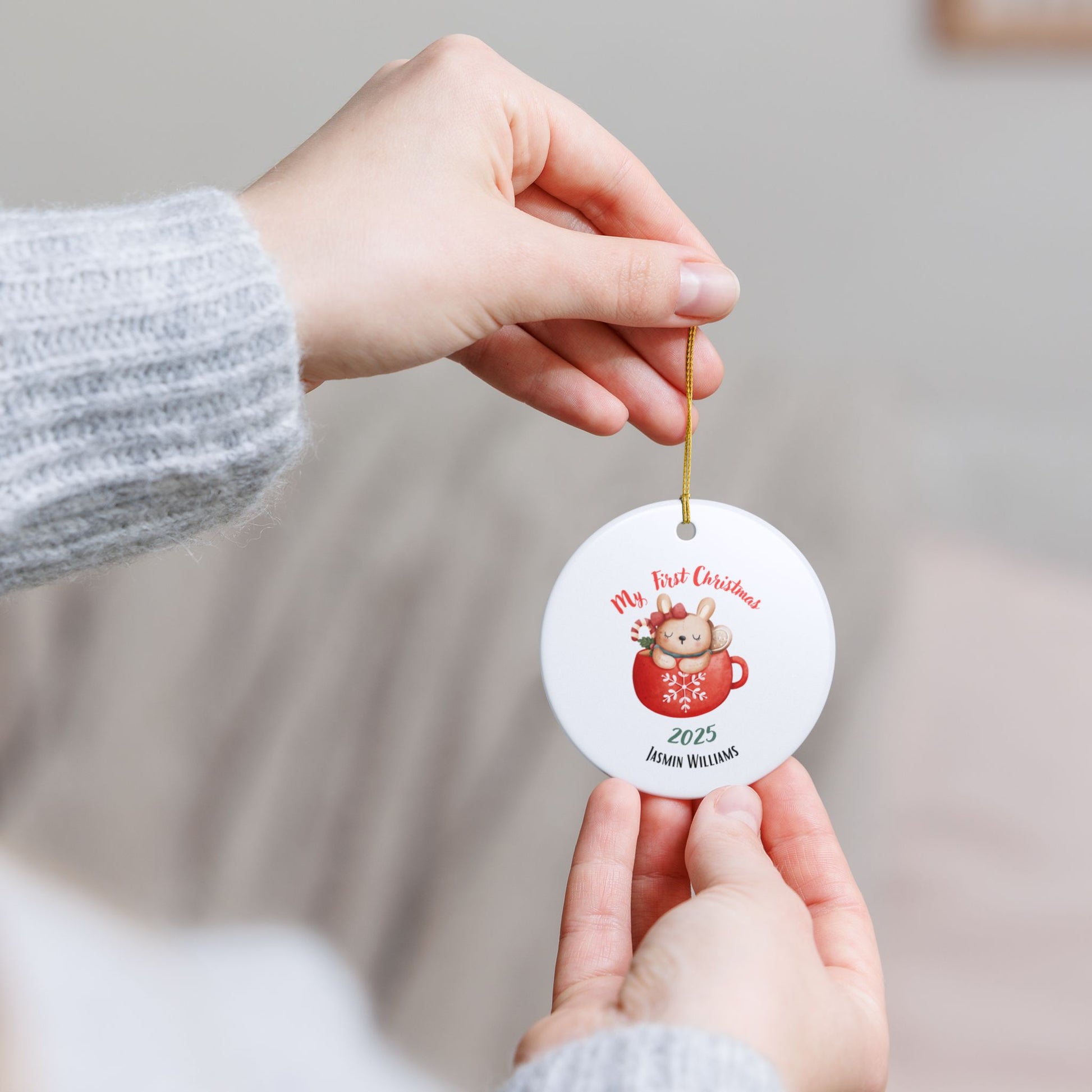 This sweet ceramic ornament is a beautiful way to celebrate a baby’s first Christmas. The gentle watercolor design features a cute little bunny sitting in the cup. It feels cozy, magical, and perfect for marking such a special milestone.